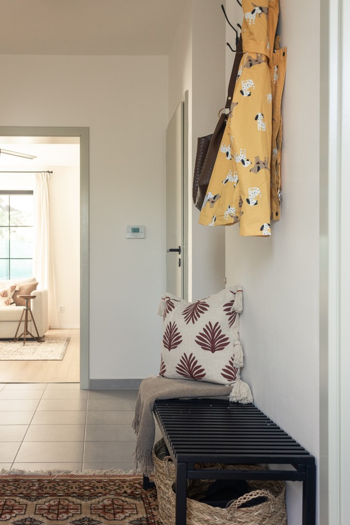 If your entryway includes a seating area, try layering a few textured pillows or a throw blanket to make the space feel warm and inviting.